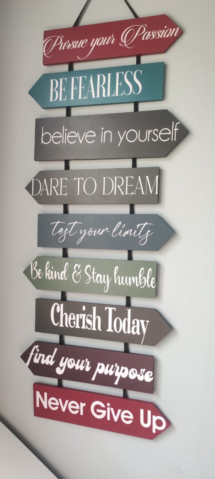 Elevate your space with the Motivational Wall Hanging, designed to inspire and uplift. Featuring powerful quotes and eye-catching designs, this piece serves as a daily reminder to stay focused and positive. Ideal for home offices, bedrooms, or living spaces, it brings a motivating touch to any environment, encouraging you to chase your dreams and stay determined.